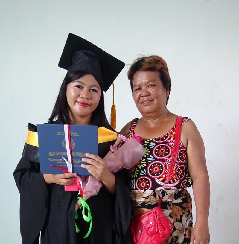 Hayde’s goal has always been to help her family, especially her mother. From home, she graduated senior high and was granted a college scholarship where she studied Psychology at NORSU. Along with the Hansons, Gail Donnelly supported Hayde’s college scholarship. They were even able to meet each other in summer 2023. Despite all the hardships and obstacles, in June, she graduated with her degree with a full-time job. She hopes to take the board exam to be a fully-fledged psychometrician in the coming months.